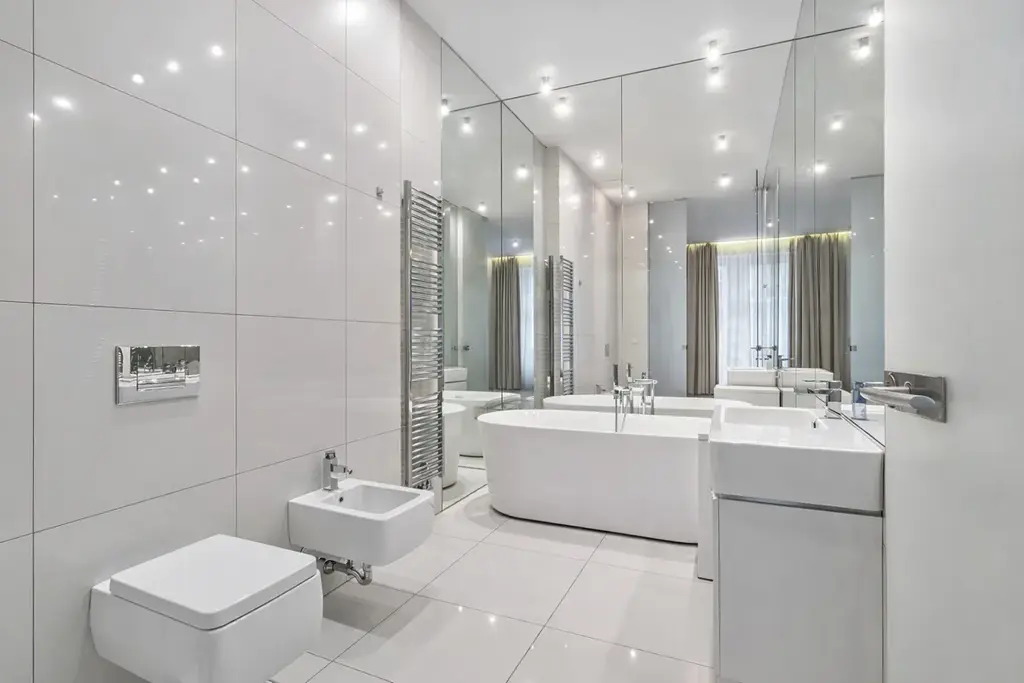 Dispozice dále nabízí dvě ložnice, koupelnu s vanou a toaletou a druhou koupelnu se sprchovým koutem a toaletou. Praktické a promyšlené uspořádání zajišťuje vysoký komfort bydlení a dostatek soukromí.