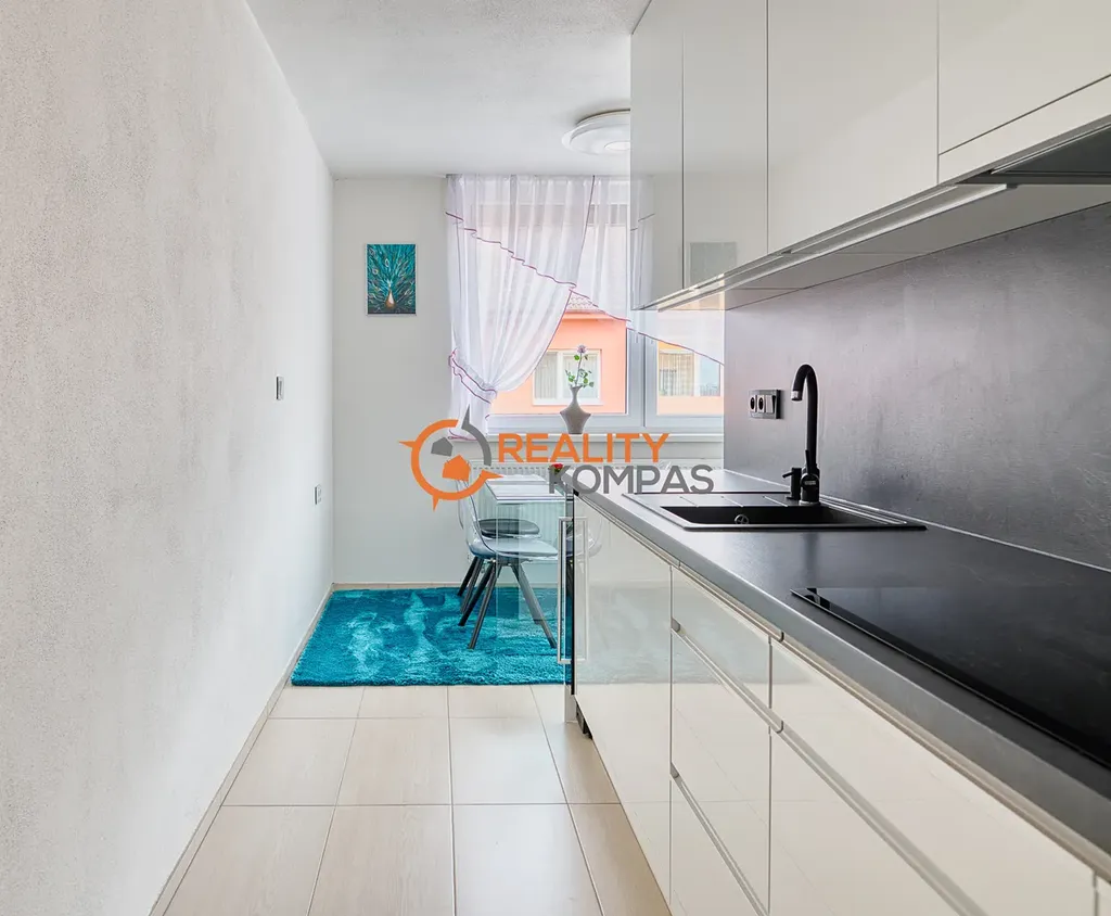 V minulých letech prošel byt velmi zdařilou kompletní rekonstrukcí a nabízí tak příjemné moderní bydlení. K dispozici vybavená kuchyně ( myčka, indukční deska, elektrická trouba, mikrovlnka, vinotéka, lednice, jídelní sestava ). V chodbě bytu je ukládací prostor na úklidové potřeby, šatní sestava. V ložnici prostorná vestavěná šatní skříň. V obývacím pokoji sedací souprava, konferenční stolek, TV, obývací stěna. Byt lze ponechat s většinou vybavení dle dohody. Nábytek zhotovený na míru.