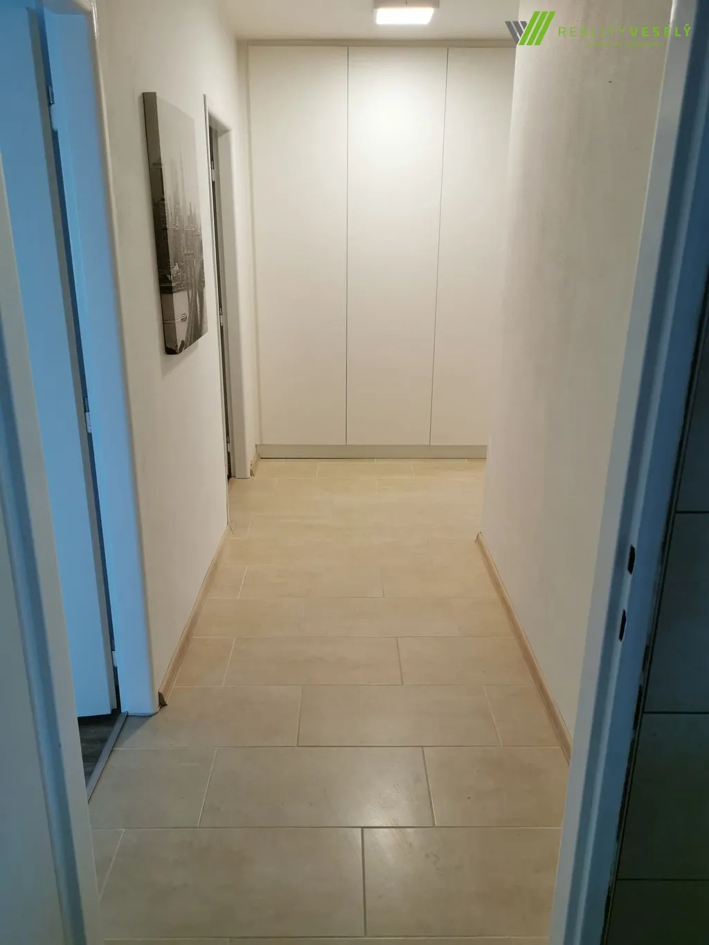 Dispozice zahrnuje obývací pokoj, samostatnou ložnici, kuchyni s místem pro jídelní kout a prostornou vstupní chodbu s úložným prostorem. Byt nabízí dostatek místa pro pohodlné bydlení.