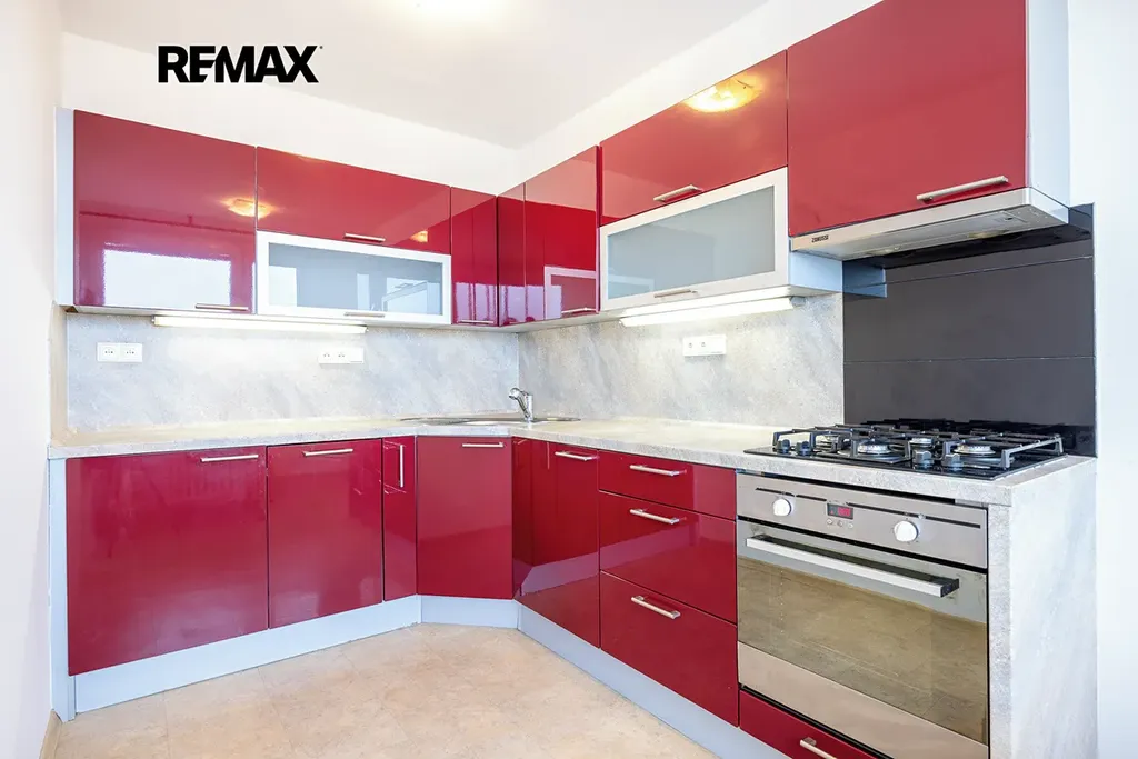 Byt je částečně zařízený. K dispozici je kuchyňská linka s myčkou, plynovou varnou deskou, multifunkční troubou a plynovým sporákem. Koupelna prošla kompletní rekonstrukcí a byt působí čistě, světlým a udržovaným dojmem. Na podlahách je vinyl.