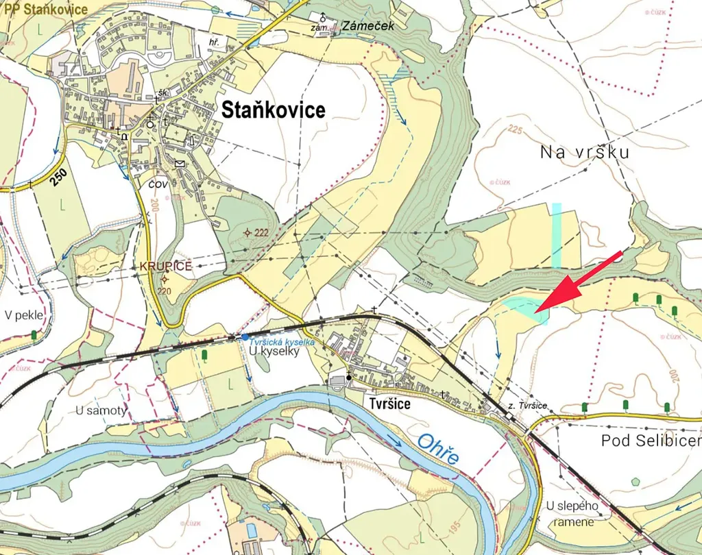 Prodáme pozemek v k.ú. Tvršice, parcelní číslo 250/21. Louka s protékajícím potůčkem.