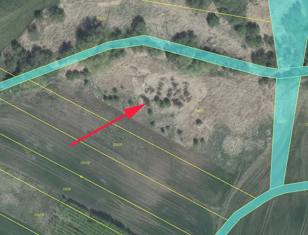 Přímo přístupná z obecní polní cesty (obecní pozemky modře na obrázku katastrální mapy).