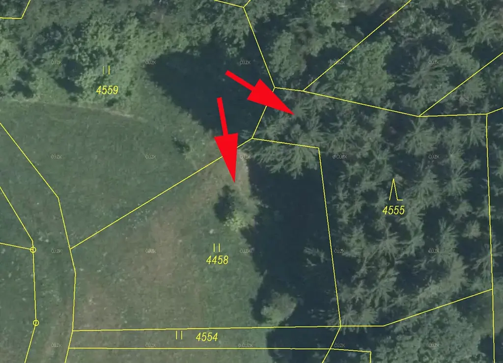 Pozemek přímo přiléhá k obecní cestě. Les možno případně prodat samostatně.