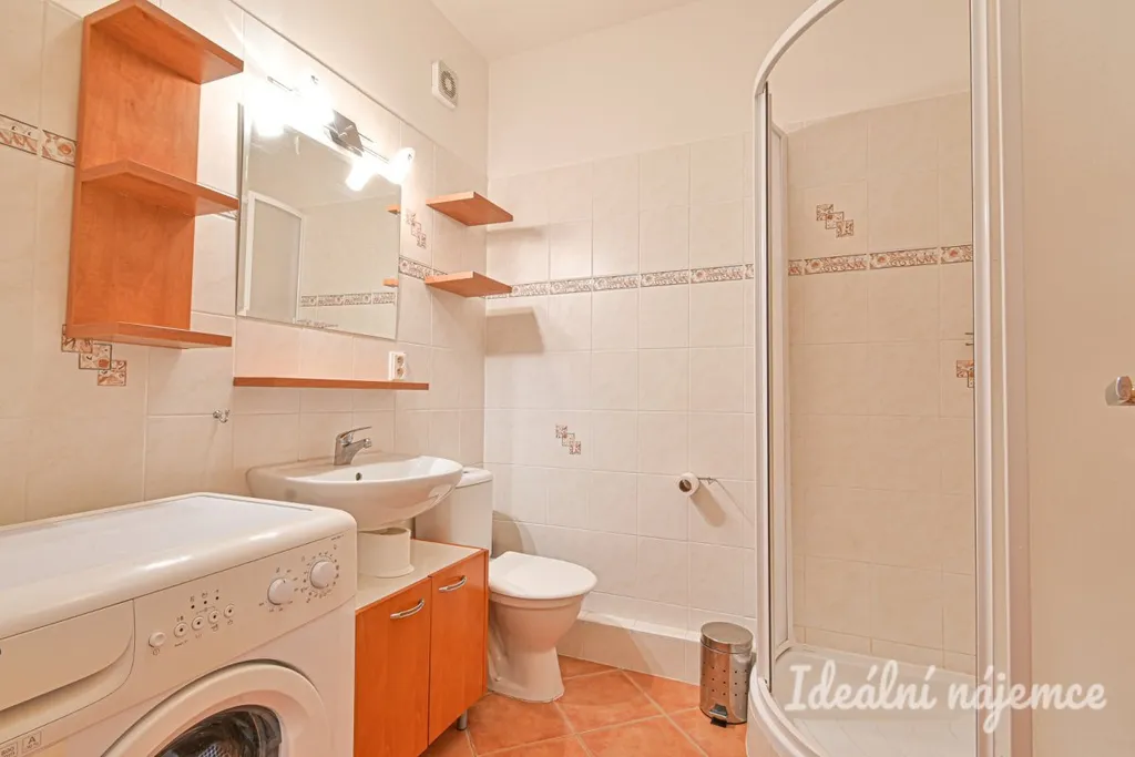 Byt se nabízí vybavený dle fotografií. Kuchyně disponuje lednicí, mikrovlnnou troubou, elektrickou troubou, varnou deskou a digestoří. Obývací část je zařízena rozkládací pohovkou, konferenčním stolkem, skříňkami a televizním stolkem. V předsíni je velká vestavná skříň a úložné prostory. Koupelna je vybavena sprchovým koutem, umyvadlem, toaletou a pračkou.