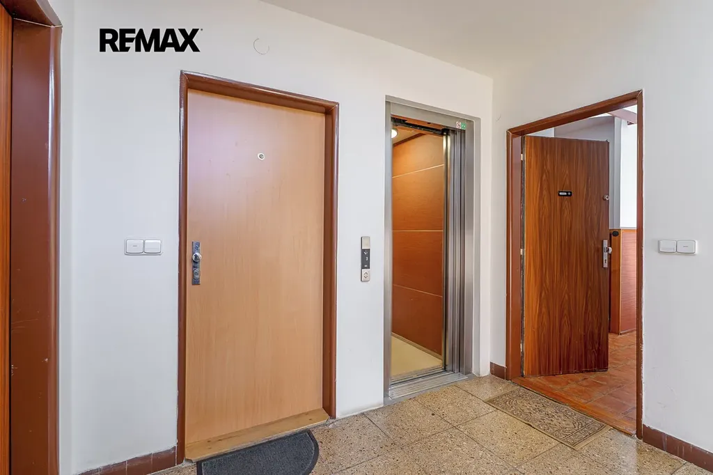 Byt je situován ve 4. NP pětipodlažního pěkného, cihlového bytového domu s novým výtahem.