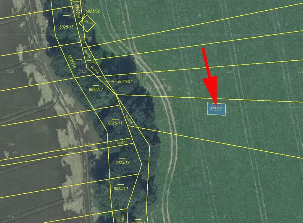 parcela č. 4755/8 orná půda 36m2, cena 3.500 Kč