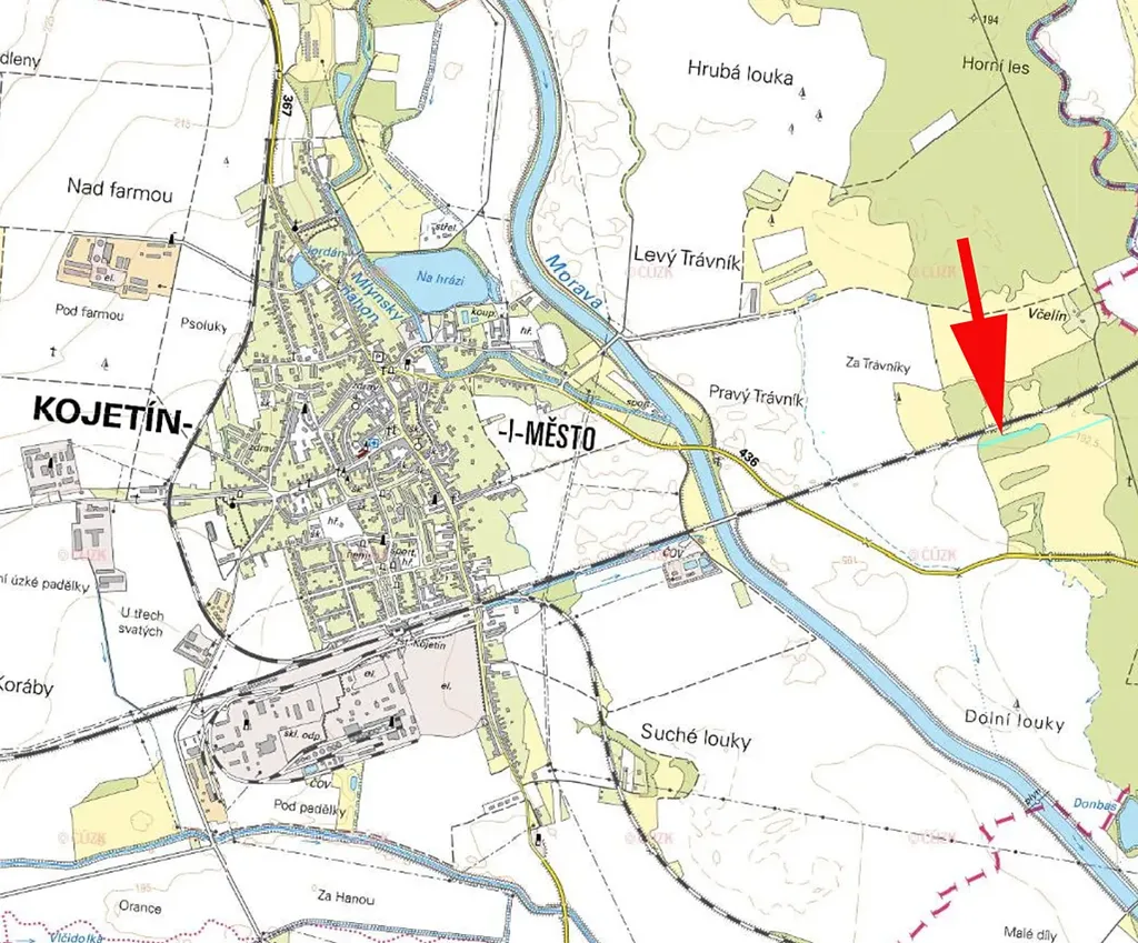 Prodáme louku v k.ú. Kojetín, parcela č. 6250/80. Stromy možno volně vykácet.