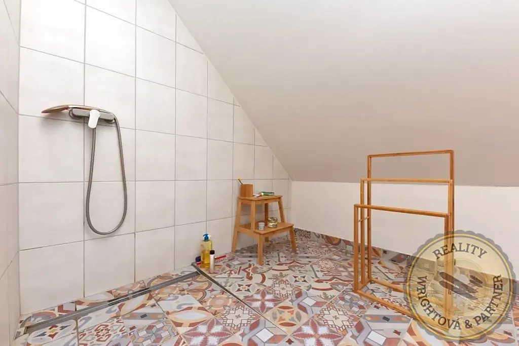 • První patro: Užitná plocha 91,58 m², koupelna s toaletou (sprchový kout), vinylové podlahy, v koupelně dlažba.