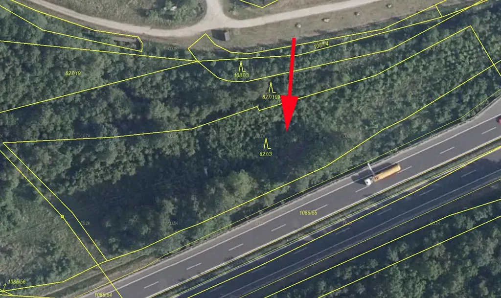 Máme na prodej i pozemky na druhé straně dálnice. Přístup po místní cestě.