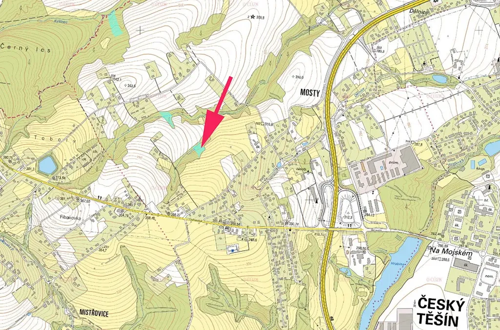Prodáme les v k.ú. Mosty u Českého Těšína, parcely č. 1176 a 1177, přímo navazující na zástavbu, uprostřed teče potok.