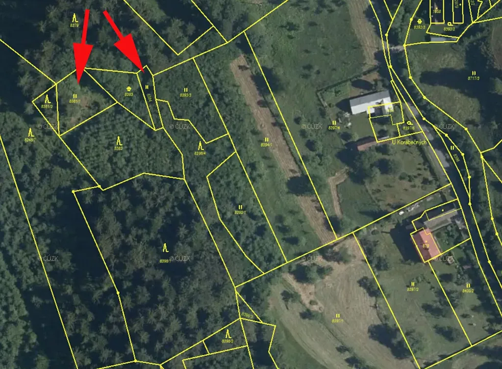 Prodáme louku s porostem stromů v k.ú. Huslenky, parc. č. 8381/1 a 8384