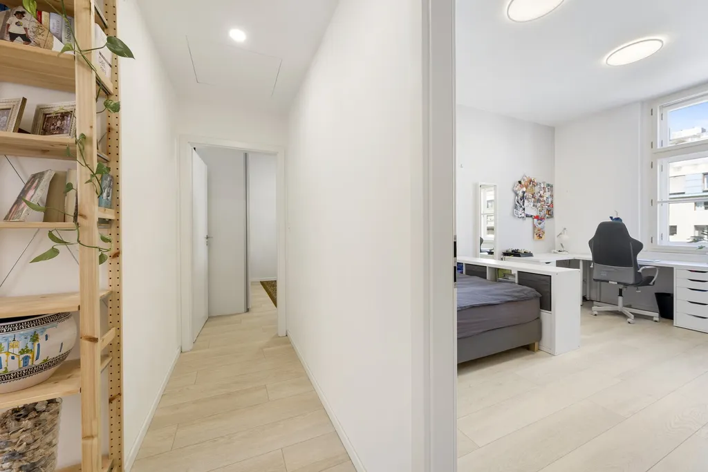 Byt prošel kompletní a velmi citlivou rekonstrukcí s důrazem na kvalitu provedení i zachování původního charakteru. Dominantou jsou vyšší stropy, které dodávají prostoru vzdušnost a eleganci. Součástí rekonstrukce byly nové rozvody elektřiny, vody i odpadu, topení, nové podlahové krytiny, omítky i okna – zkrátka vše bylo vybudováno zcela od základu.