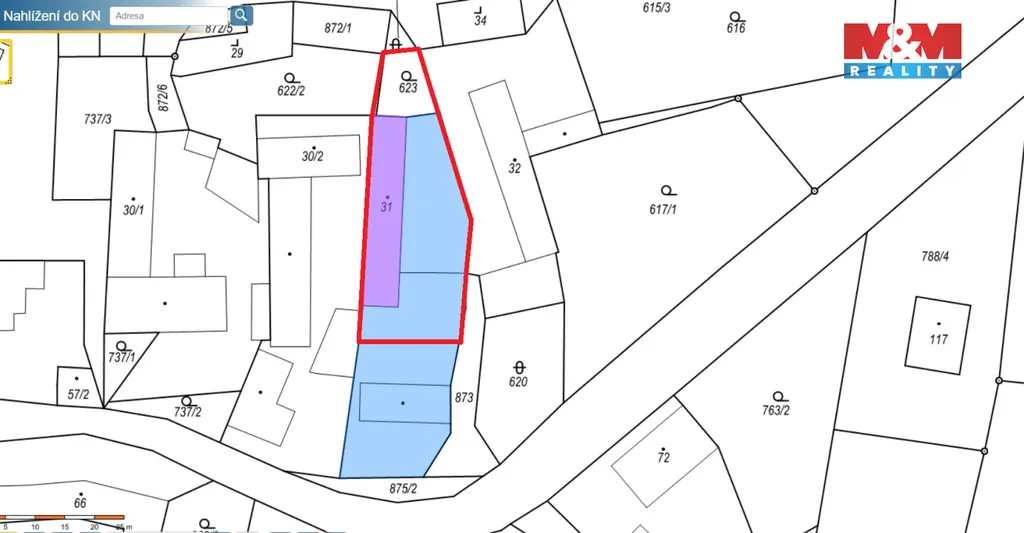 Na pozemku se nachází také stodola, kterou si chce majitel ponechat. V případě zájmu je majitel připraven pozemek rozdělit geometrickým plánem.