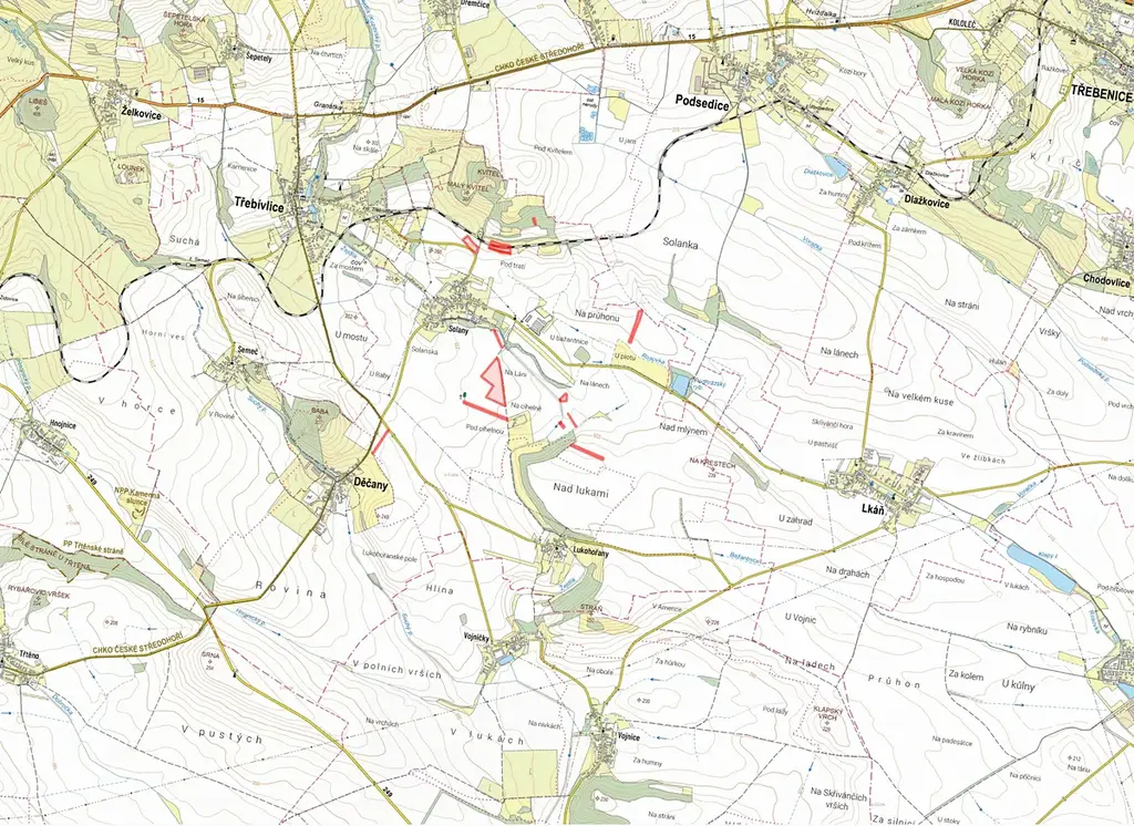 V katastrálním území Solany, obec Děčany, okres Litoměřice, nabízíme k prodeji rozsáhlý komplex pozemků ve výlučném vlastnictví o celkové výměře 78 982 m². Pozemky jsou zapsány na listu vlastnictví č. 59.