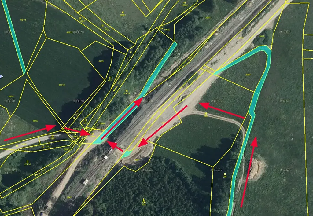 Prodáme louku v k.ú. Arnoštovice, parc.č. 308/1 a další. Louky přímo přiléhající k hlavní železniční tratí Praha - České Budějovice, ideální místo pro poutač. Po okraji protéká potůček. Přístup na pozemky po obecních polních cestách, podjezdem pod tratí - viz obrázek.