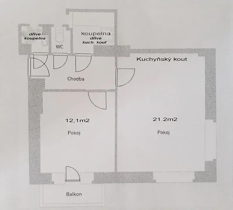 místnost s umyvadlem –původně koupelna- 1,1m²