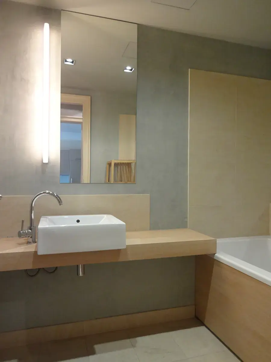 Dále byt disponuje koupelnou s vanou a topným žebříkem, samostatnou toaletou s umyvadlem a komorou, kde je umístěna pračka.