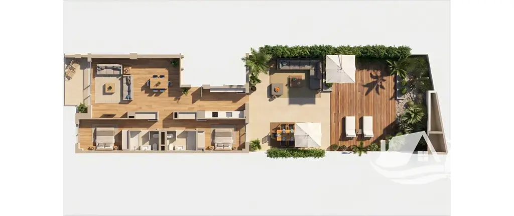 Představujeme luxusní apartmán s dispozicí 3 + kk, který nabízí dvě prostorné ložnice, dvě elegantní koupelny a 107,22 m² vnitřního obytného prostoru doplněného o výjimečnou 128,65 m² soukromou terasu. Tento apartmán je navržen tak, aby splňoval vysoké nároky na komfort, světlo a vzdušnost. Otevřený obývací prostor s kuchyní vytváří harmonické místo pro každodenní život, setkávání i chvíle odpočinku. Velkorysá terasa poskytuje soukromí a nabízí prostor pro relaxaci, stolování i vytvoření vlastní středomořské oázy přímo v centru města.