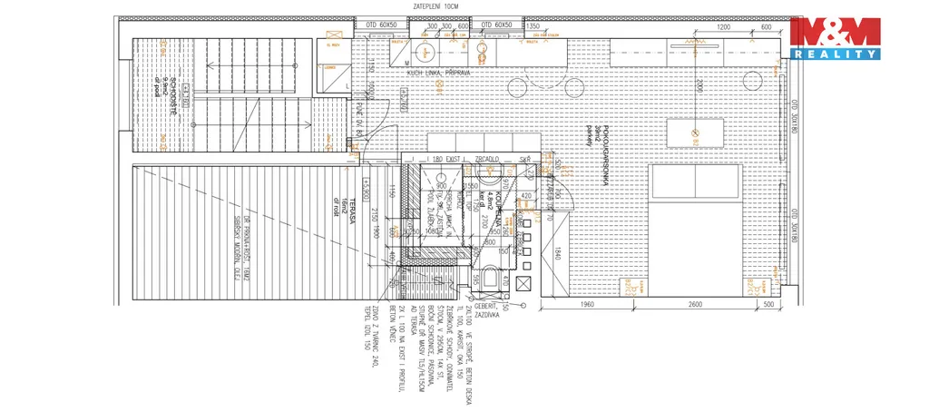 Vytápění a ohřev vody zajišťuje plynový kondenzační kotel, doplněný podlahovým vytápěním v koupelnách. Průměrné měsíční náklady na provoz činí pouze cca 7 000 Kč.
