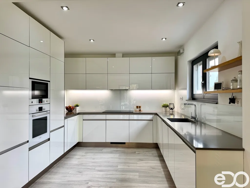Dominantou nemovitosti je prostorný obývací pokoj s kuchyňským koutem a přímým vstupem na velkou terasu, která navazuje na udržovanou zahradu. Ta poskytuje dostatek soukromí, nachází se zde okrasné jezírko i zázemí pro děti. Údržba zahrady je nenáročná – stačí pravidelné sekání trávy, o začátek a konec sezóny i průběžnou péči se stará majitel.