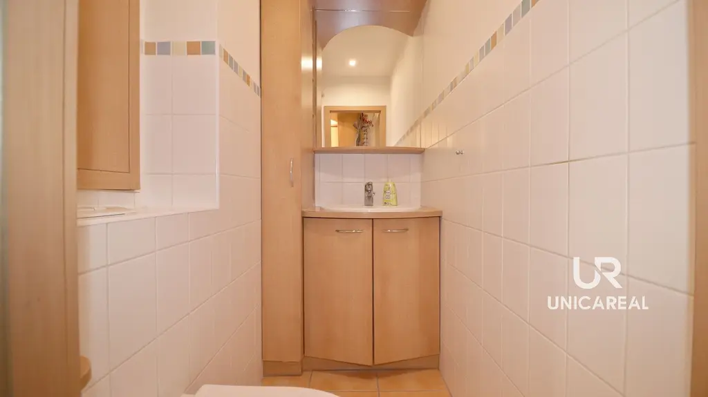 Byt zaujme již při vstupu – velká předsíň 8,3 m² nabízí dostatek místa pro vestavné skříně. Dispozice je velmi praktická a funkční pro rodinné bydlení.