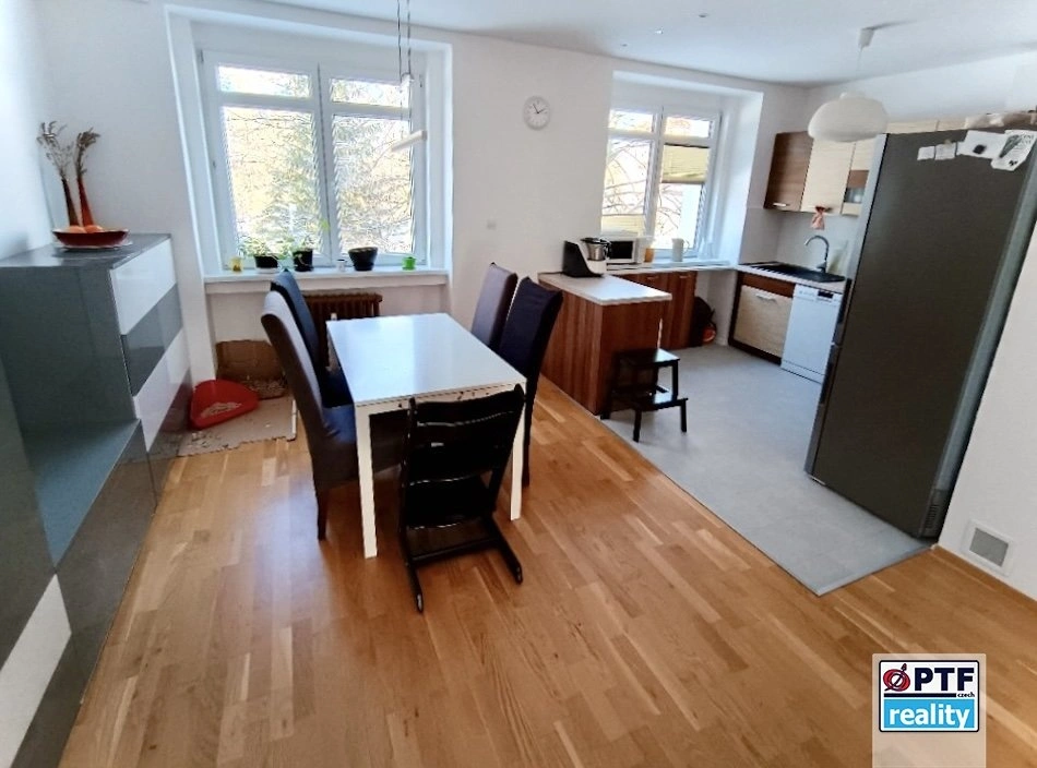 Byt je velmi dobře dispozičně řešen – je členěn na obývací pokoj s kuchyňským koutem, dva neprůchozí pokoje, koupelnu s vanou a samostatnou toaletu. K bytu náleží prostorný sklep.