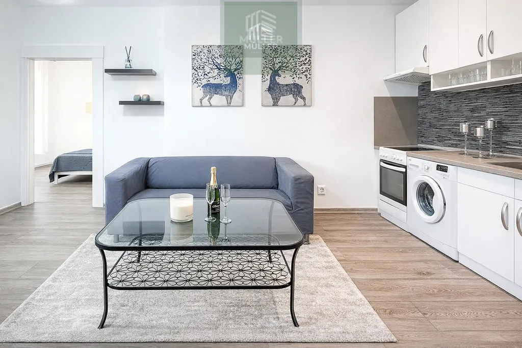 Součástí pronájmu je veškerý nábytek a vybavení z fotografií, včetně pračky, ledničky a dalších spotřebičů. V ložnici bude nově instalována prostorná šatní skříň, která zatím není na foto. Celý byt bude čerstvě vymalován a uklizen profesionální úklidovou službou.