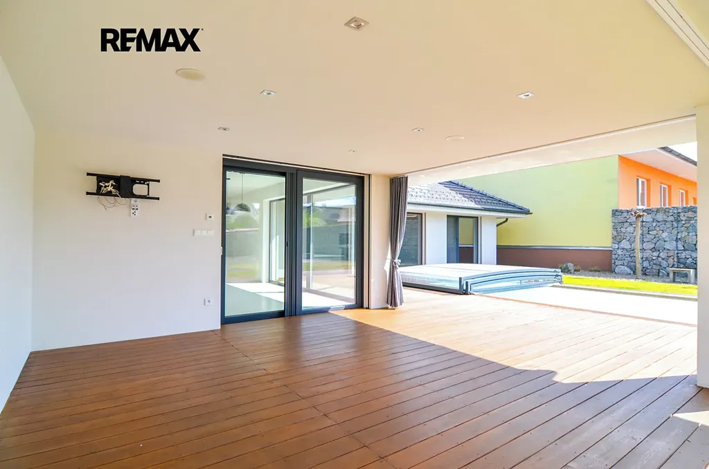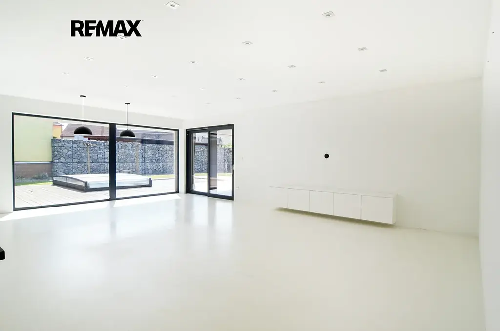 Moderní dům 4+kk v Mutěnicích, kde z každé místnosti vstoupíte přímo na zahradu s bazénem.