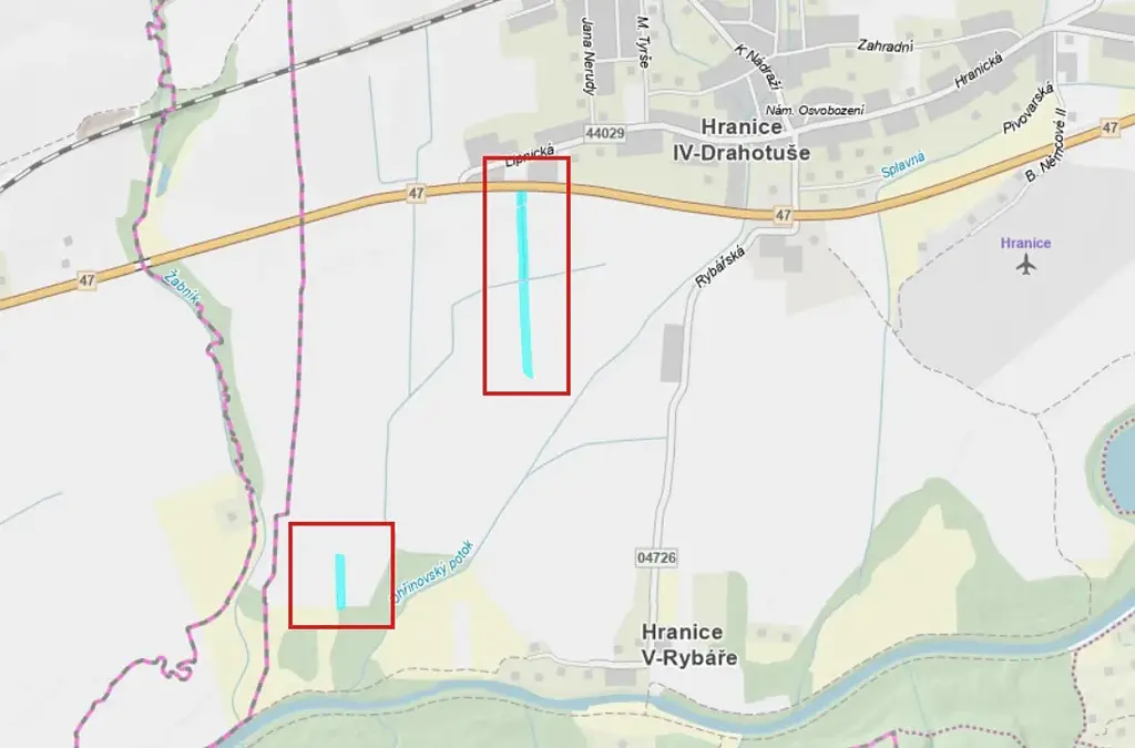 V kú Drahotuše se jedná o všechny pozemky na LV 2200
