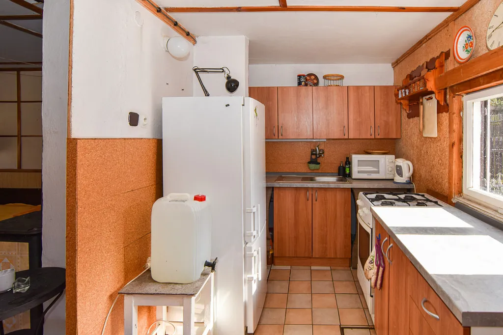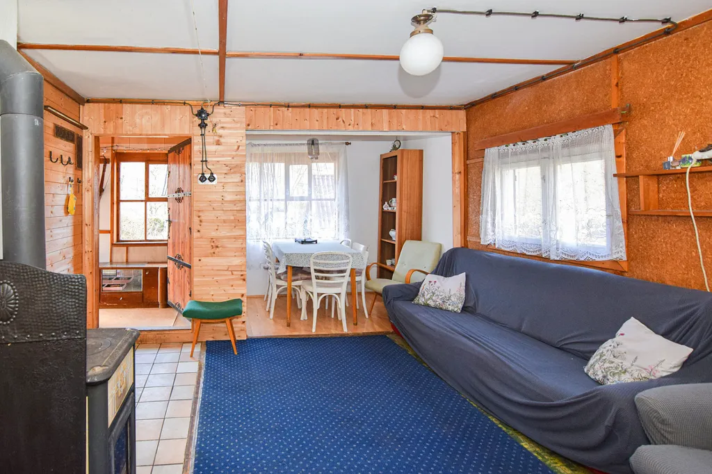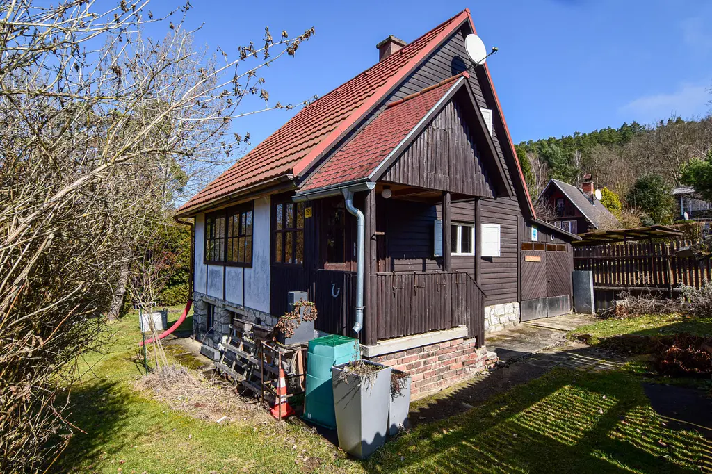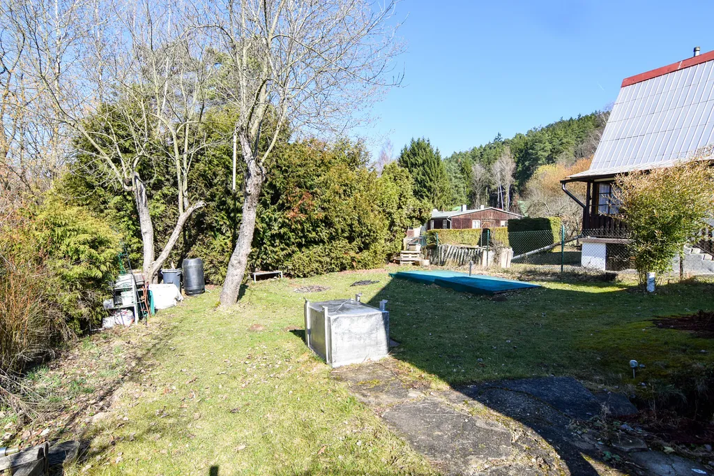 Chata ze 70. let je v dobrém a udržovaném stavu a má vlastní, oplocený pozemek o celkové výměře 341 m².
