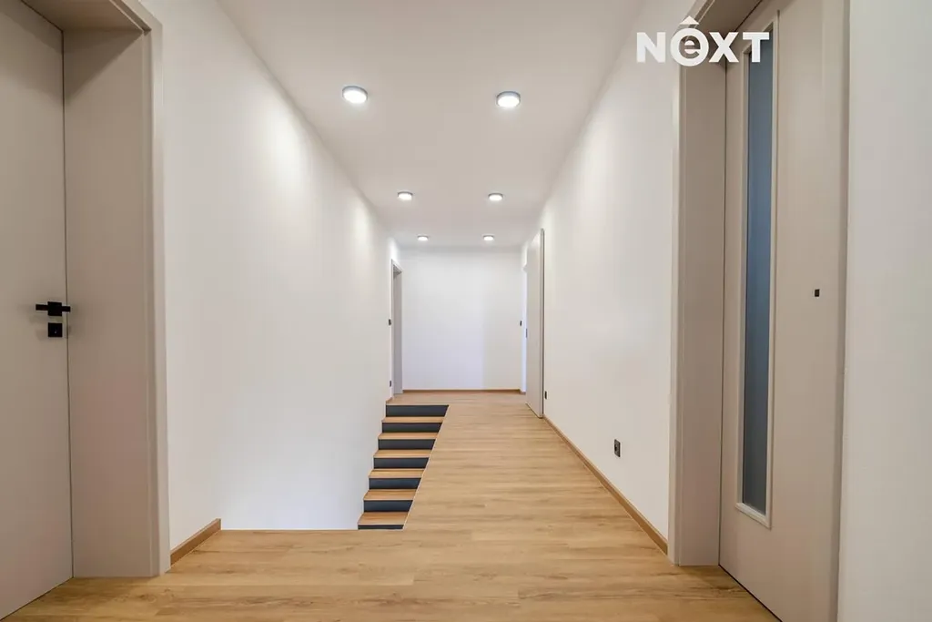 Ve 2. nadzemním podlaží potěší nadstandardní výška interiérových dveří 210 cm se zvýšenými obložkami, které podtrhují celkový moderní vzhled interiéru. Kvalitu stavby dále potvrzují izolační trojskla oken a hliníkové provedení všech vstupních dveří a HS portálu.