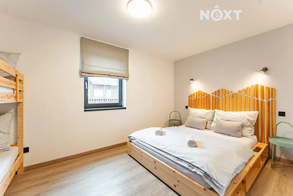 Každá jednotka má svou vlastní atmosféru, ale všechny spojuje jeden pocit – teplo, klid a pohoda, kterou od hor očekáváte. Interiéry kombinují moderní prvky s přírodními materiály a jsou kompletně vybaveny – nechybí plně vybavená kuchyňská linka, postele, jídelní stůl ani vlastní sociální zázemí se sprchovým koutem a toaletou.