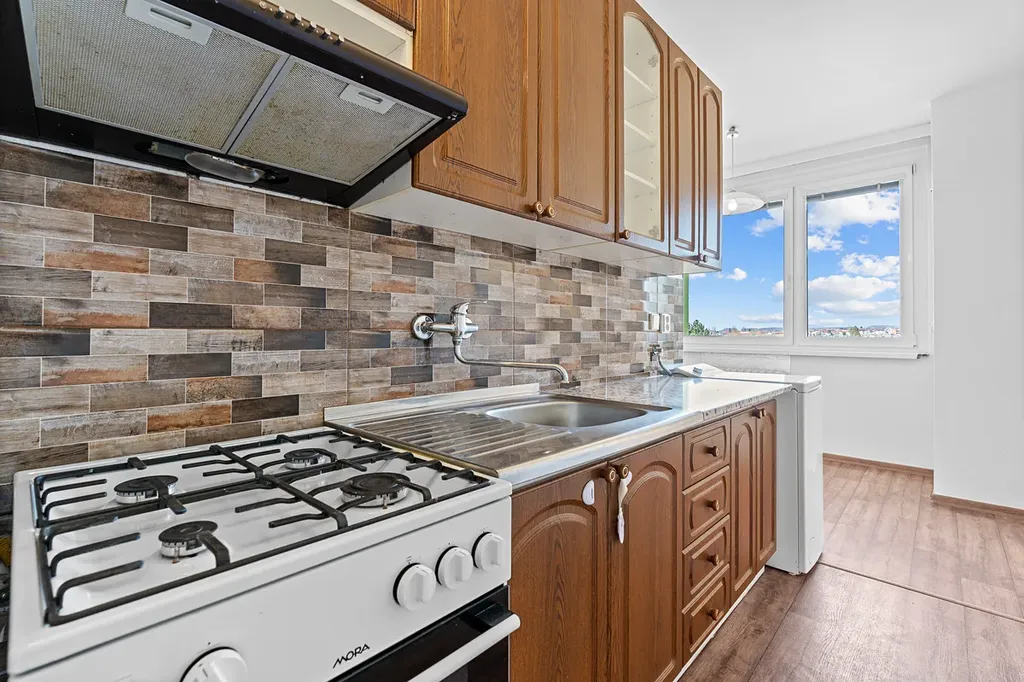 Bytová jednotka je situována v 6. nadzemním podlaží panelového domu se dvěma výtahy. K bytu náleží praktická komora na patře a sklepní kóje v suterénu.