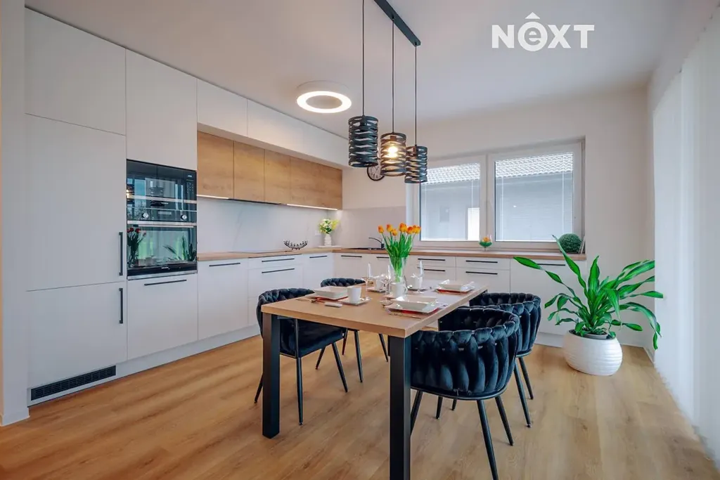 Dům vyniká prvotřídní kvalitou výstavby ve skvělé lokalitě. Jedná se o atraktivní a bezpečné bydlení splňující nejmodernější současné trendy. K dispozici je vstupní hala (8 m2), chodba (7,8 m2), obývací pokoj s kuchyňským koutem (47,1 m2), ložnice (18,4 m2), pokoj (16,5 m2), pokoj (15,1 m2), koupelna s vanou, WC a sprchovým koutem (8,7m2), samostatné WC (2,4 m2), technická místnost (2,3 m2), krytá terasa (13,7 m2).