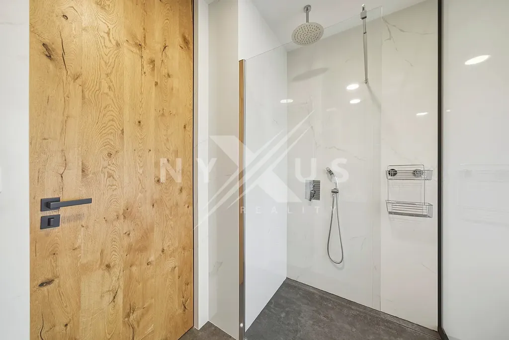 Příjemný dojem podporují i materiály a technické řešení bytu. V obytných místnostech najdete dřevěnou podlahu, kuchyň je vybavena linkou s vestavěnou myčkou, troubou a plynovým sporákem a koupelna se sprchovým koutem je doplněna o samostatné WC, které zvyšuje pohodlí každodenního provozu.