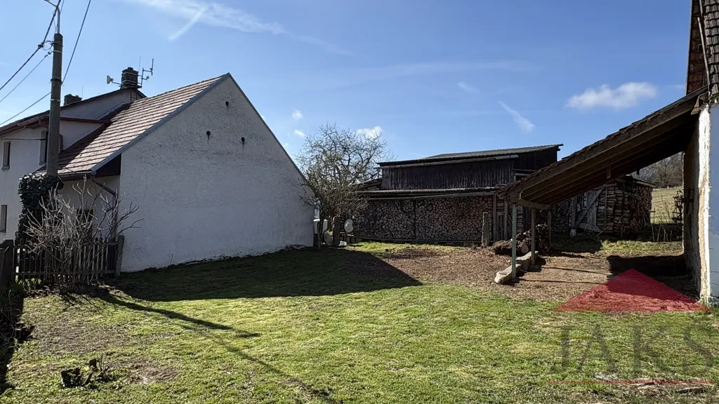 Vedlejší stavby: navazující hospodářská část: velká maštal v rohu domu (vhodné pro přístavbu obytné část (například koupelny s WC a kotelny), velká stodola s vraty a půdou (také vhodná k vestavbě), dřevěná pergola pro auto.