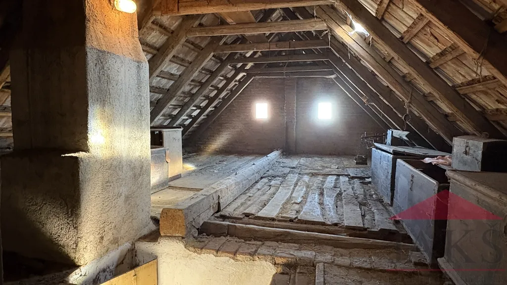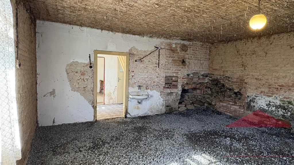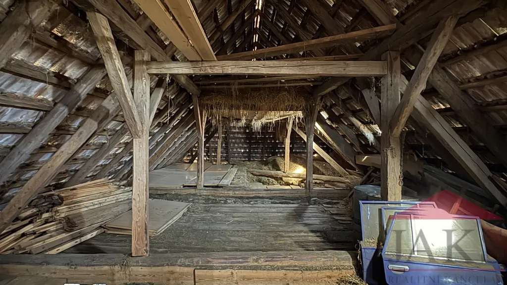 Popis: část. (1/5) podsklepeno klenbovým sklepem (uzávěr vody); přízemí: vstupní chodba (schodiště na půdu), původní velká sednice (okopáno a vyštěrkováno), ložnice, původní černá kuchyň (nefunkční) a komora/sklad; vysoká vyklizená půda vhodná pro půdní vestavbu.