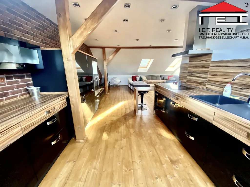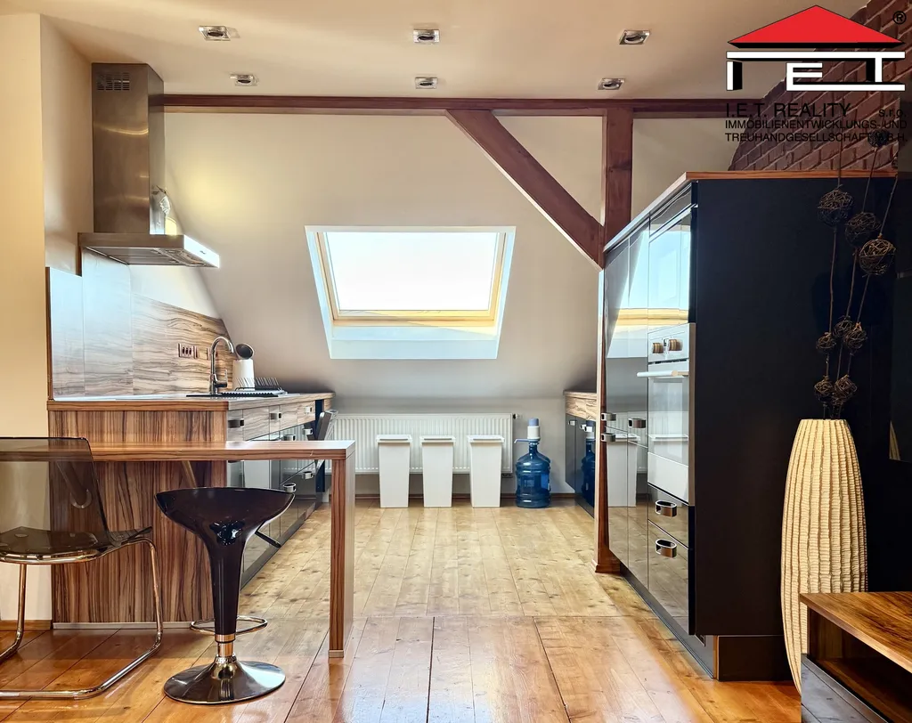 Byt je v rámci rodinného domu umístěn ve 2. patře a je oddělený jako samostatná jednotka. Byt je velmi dobře dispozičně řešen, kdy ze vstupního prostoru je přístup do kuchyně, situované do zahrady. Navazuje jídelna a obývací prostor. Následně jsou dvě oddělené místnosti, ložnice a pokoj. Koupelna se sprchovým koutem, WC, umyvadlem a pračkou. Byt je kompletně zařízen, viz. fotografie, nechybí v něm klimatizace, myčka nádobí, trouba, indukční deska, televize, designový nábytek, zkrátka je zařízen pro Váš komfort. Volné ihned. Termíny prohlídek a více informací po domluvě.