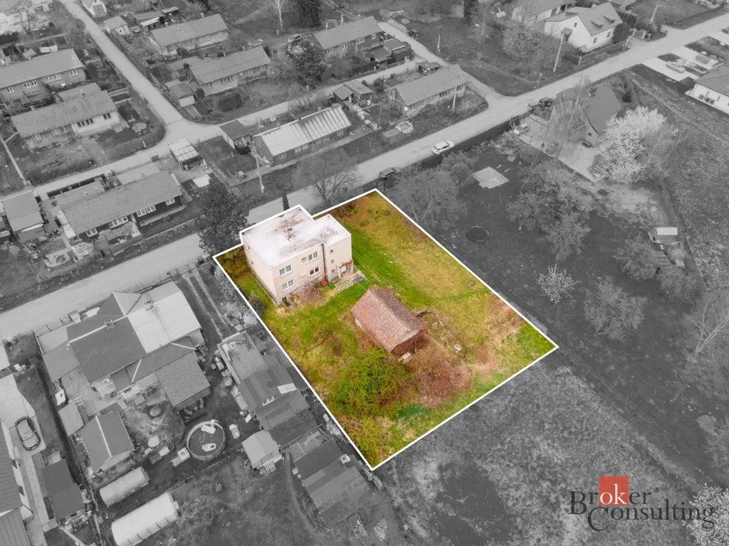 Dům stoji na pozemku s dostatkem prostoru pro zahradu či relaxační zónu. součástí pozemku je také zděná kůlna , kterou lze po úpravách přestavět na dvojí garáž či dílnu a garáž.