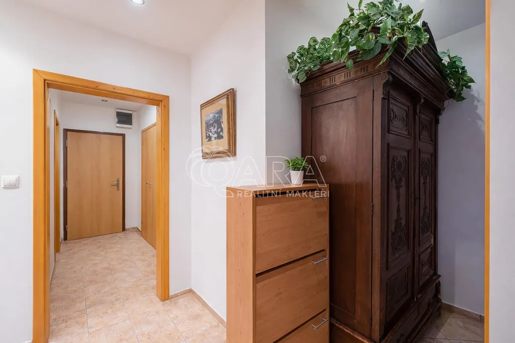V roce 2007 proběhla v bytě rozsáhlá rekonstrukce. Obývací pokoj a jídelna s kuchyní jsou obráceny na jihozápad, tři ložnice a lodžie pak na severovýchod. Byt má dále dostatek úložných prostor, koupelnu s rohovou vanou a dvě samostatné toalety. Pračka se sušičkou jsou umístěny ve výklenku v chodbě. K bytu patří také sklep.