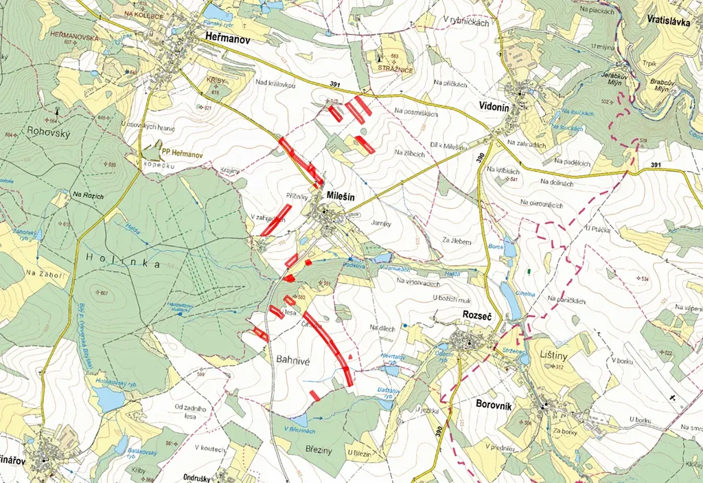 Prodej pole, Milešín, 48066 m2