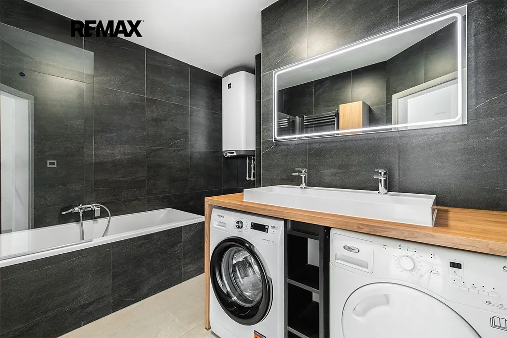 Byt je zařízen novou moderní kuchyňskou linkou, s kvalitními spotřebiči - lednice s mrazákem, mikrovlnná trouba, vestavná trouba a sklokeramická indukční deska. Koupelna je vybavena pračkou i sušičkou. Velkou výhodou je dále podlahové topení a příprava pro krbová kamna.