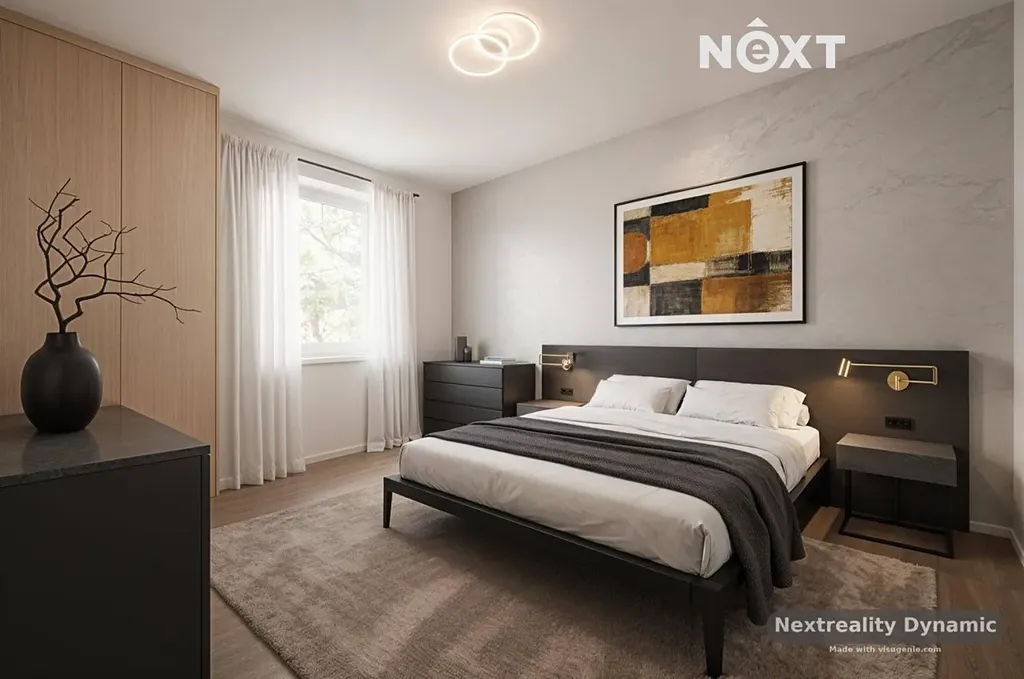 • Hlavní ložnice se sádrokartonovým regálem a prostorem pro velkou šatní skříň (možnost úpravy na pokoj pro dvě děti).