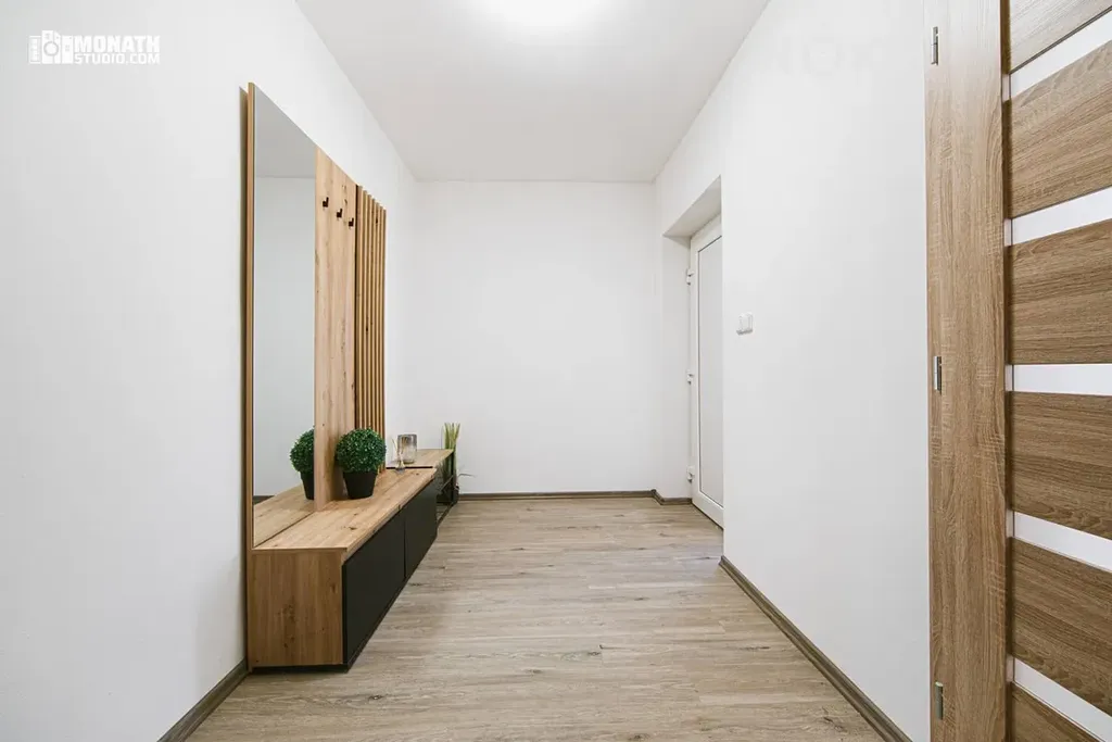 • Prostorná chodba s vestavěnou skříní a vstupní hala s praktickou šatní a botníkovou sestavou se zrcadlem.