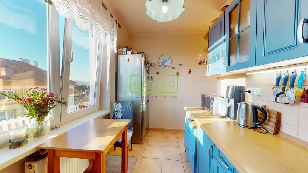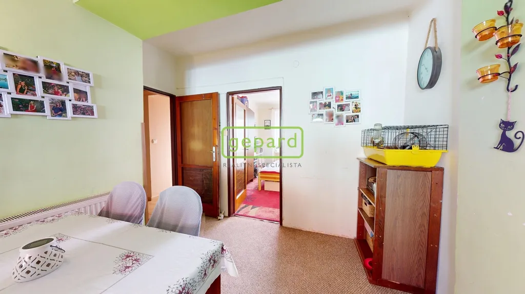 Dispozice bytu je prakticky řešena – obývací pokoj, dětský pokoj, ložnice, kuchyně, koupelna + WC a předsíň. Vytápění i ohřev vody zajišťuje vlastní plynový kotel, což umožňuje efektivní regulaci nákladů na energie.