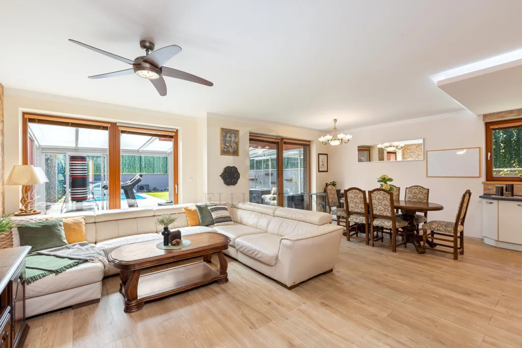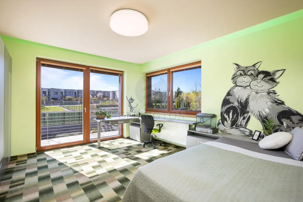 Nabízíme prodej rodinného domu 5+kk na Praze- západ město Roztoky, které se pyšní nejen krásnou přírodní rezervací Tiché údolí, ale i také kompletní občanskou vybaveností včetně škol a školek a přesto kousek od Prahy. Jedná se o novostavbu 5+kk s garáží kolaudovanou v roce 2018 o celkové rozloze 163m2 + 4m2 balkon u ložnice a 8m2 terasy u druhé. Dům stojí na pozemku 381m2. V přízemí domu se nachází zádveří z kterého se vchází do šatny z vest. skříní také samostatná toaleta , technická místnost, infra sauna se sprchovým koutem, která je umístěna v garáži. Dále se vchází do obývacího pokoje s přípravou na krb a plně vybavenou kuchyní spojují s terasou a soukromou zahradou s velkoformátovými okny. Patra spojují masivní dřevěné schodiště se stejném stylu jako jsou parapety a zárubně dveří. V první podlaží se nachází 4 ložnice, z nichž dvě mají vlastní vstup na terasu s výhledem do zahrady. V celém domě byli použity nadstandardní prvky včetně sanity, kompletně zařízený kvalitním nábytkem na míru (lze prodávat i nezařízený). Soukromí horního podlaží doplňuje koupelna s vyhřívanou podlahou (toaleta, vana, sprchový kout) a samostatná toaleta, vše vybaveno sanita Grohe. V přízemí je položena luxusní dlažba Marazzi, v celém domě jsou sádrové omítky, podhledy a všechna okna disponují venkovními žaluziemi na ovládání a sítěmi proti hmyzu. Vytápění domu je řešeno plynovým kotlem Protherm a podlahovými konvektory v kombinaci s s radiátory. Garáž a vstupní brána jsou na dálkové ovládání a bezpečnost celého domu zajišťuje alarm. Zahradní bazén se slanou vodou (4x3 m) a protiproudem na automatické ovládání doplňuje zastřešená terasa, hliníková pergola s plisé roletkami, trávníkový koberec s automatickým zavlažováním a zahradní domek. Velmi pěkné bydlení které vnese do života soukromí a výjimečný komfort. Možnost hradit i hypotečním úvěrem s kterým vám i velice rádi pomůžeme. Vzhledem k lokalitě tuto nabídku doporučujeme. Nutno vidět.