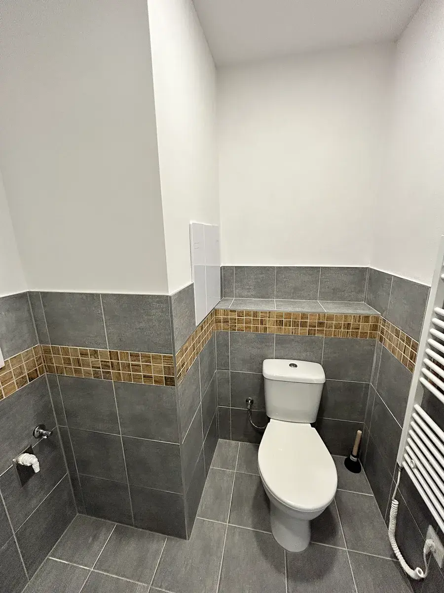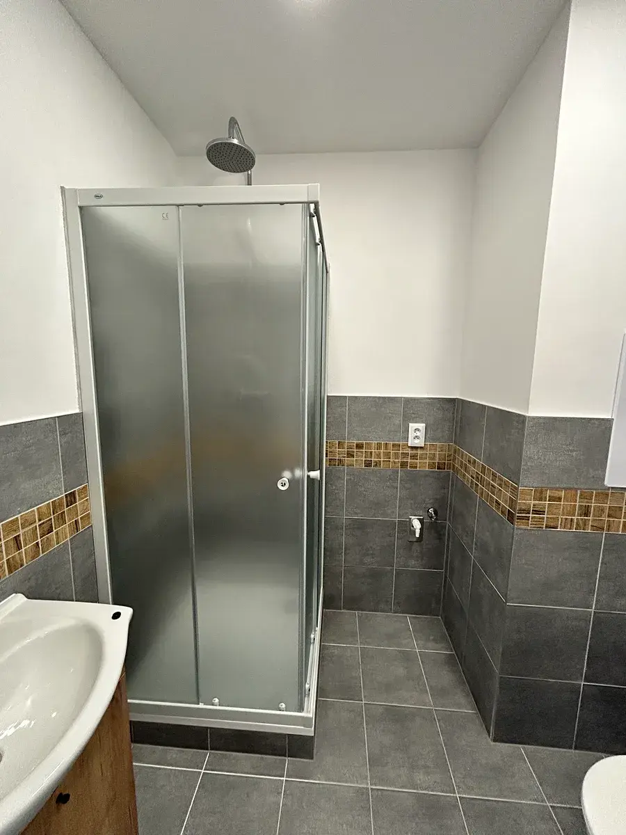 Koupelna: Moderní koupelna se sprchovým koutem (bude ještě doplněna o nové zrcadlo).