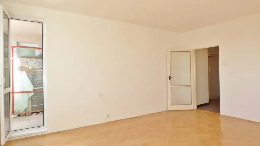 Byt má 2 neprůchozí pokoje a z obývacího pokoje a kuchyně je vstup na dva malé balkony.