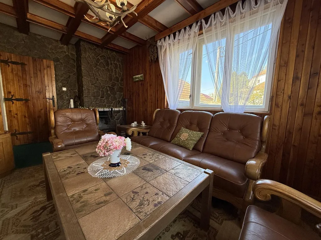 Po schodišti vystoupáme do prvního patra chodby o velikosti cca 11,24 m². Na patře jsou dvě místnosti, z toho jedna je vybavena krásným funkčním krbem o celkové výměře 15,20 m². Tato místnost je plně vybavena nábytkem. Druhá místnost má celkovou plochu cca 17,26 m². V přízemí vedle schodiště nalezneme sklep o výměře cca 4,80 m².