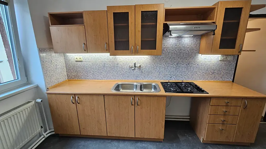 Nyní jsou dokončovány opravy bytu, nové podlahy, výmalba, výměna kuchyňských spotřebičů. K dispozici bude plynová varná deska a vestavná trouba.